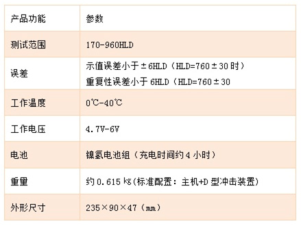 主機(jī)(含打印機(jī))1臺、D型沖擊裝置1支、小支撐環(huán)1只、尼龍刷1只、高值標(biāo)準(zhǔn)里氏硬度塊1塊、充電器1只、打印紙1卷。